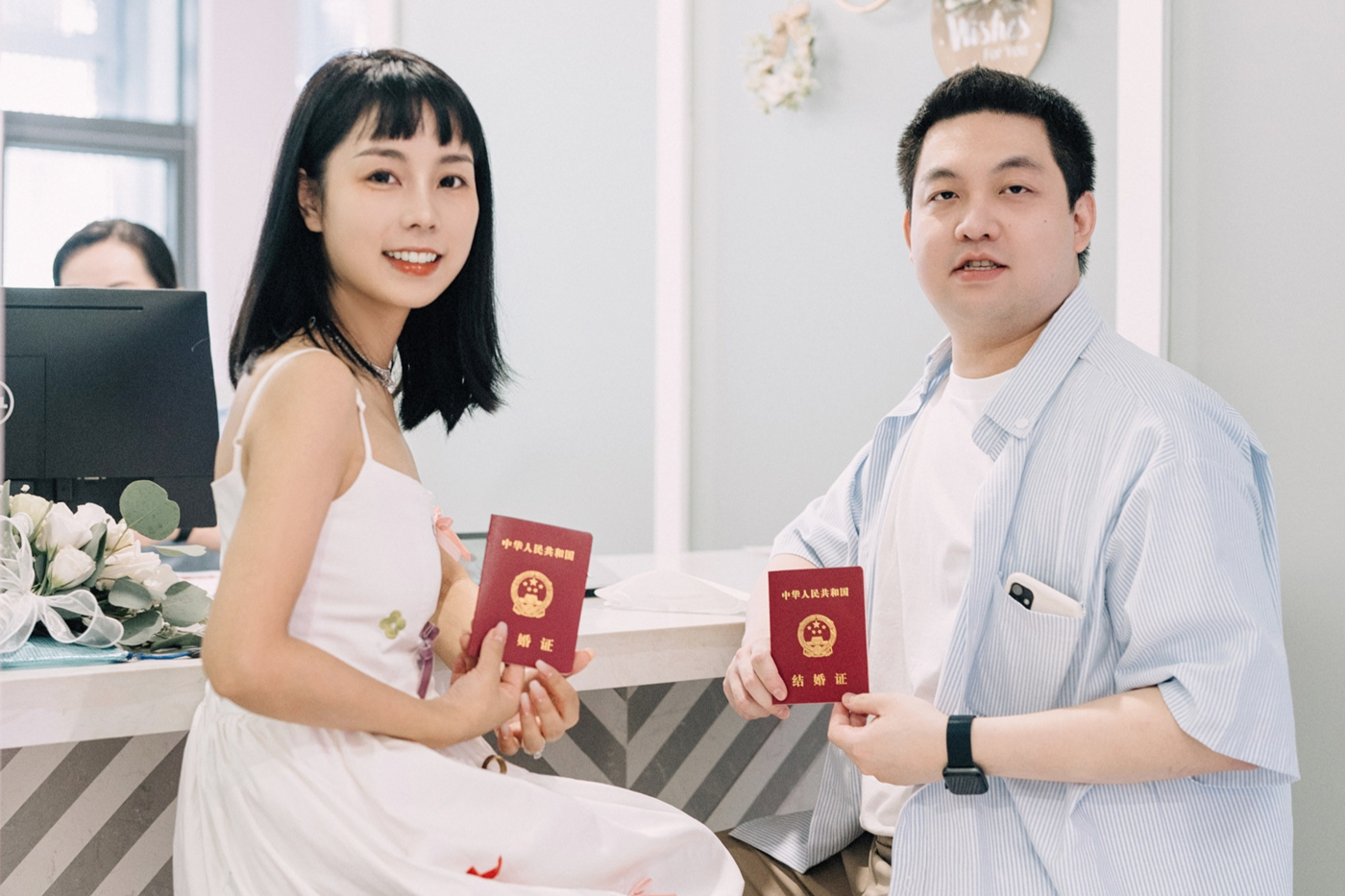 #领证那天你笑的像个长不大的孩子 做为父母陪你见证你人生中每一个重要时刻,情亲如此,爱情亦如此。 作为记录的我,见证你们的求婚,此时又见证了你们的领证,作为旁观者的我对你们的“情”深深吸引着。 希望在今后的每一个重要时刻都能为你们记录见证[愉快] 祝福你们 胡先生胡太太[更多…]